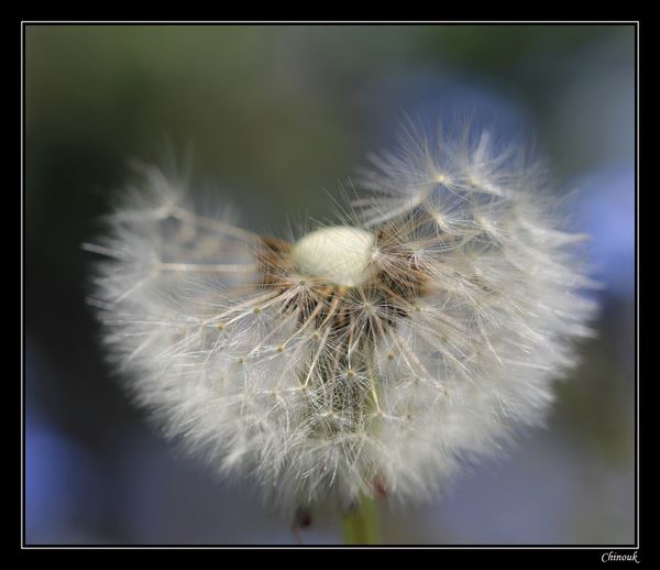 A la pointe d’un chalumeau, la sphère de graines blanches que le vent crève et emporte. Espèce de bulle de savon des prés qui semble avoir été soufflée par la terre.